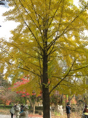 胡亂拍了幾張照片後,我們走到一家食堂式的餐廳外面。木房子裏面擺的木桌木椅有點鄉郊的簡單隨意,但座位都差不多被佔滿了,我們只好在先在戶外的露天桌椅坐下來,然後我進室內看餐廳是自助的還是怎樣。一進去,發覺大家只是在吃差不多的東西,不是拌飯便是麵條;但牆上的韓字菜單馬上便把我給嚇倒了,心想還是退回自己的桌子上讀一下背包裏那本Lonely Plant Korean Phrase Book 裏Food 那一篇吧。可惜,坐了半天,侍應只是匆匆忙忙地跑來跑去,不要說我們這些不懂韓語的外國人了,連坐在一旁的本土人也沒理睬。剛巧室內有一桌客人剛走,我想可能外面會不會是沒有服務的呢? 那便進去坐下。果然馬上便有個廿來歲的姑娘來招呼。不過,她跟我們說的不是問要吃甚麼,而是解釋客人太多了,超出了她們的負荷,已經沒法再接受點菜了。我想不會是嫌我們外國人麻煩吧? 但她的樣子又不像。算了,反正應該有其他吃東西的地方,就不呆下去了。